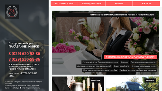 | SEO-описание | Похоронное бюро Пахаванне предлагает населению все виды ритуальных услуг в Минске по доступным ценам, круглосуточный телефон ритуального агентства |