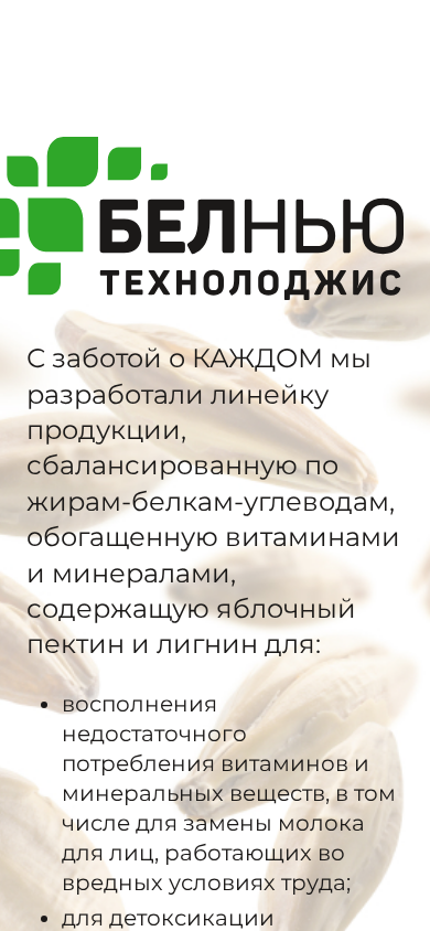 | SEO-описание | Продукция при вредных условиях труда, сбалансированная по жирам-белкам-углеводам, обогащенная витаминами и минералами. |