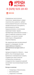 | Название / Заголовок | ПРОКАТ СТРОИТЕЛЬНОГО ИНСТРУМЕНТА В ВИТЕБСКЕ |