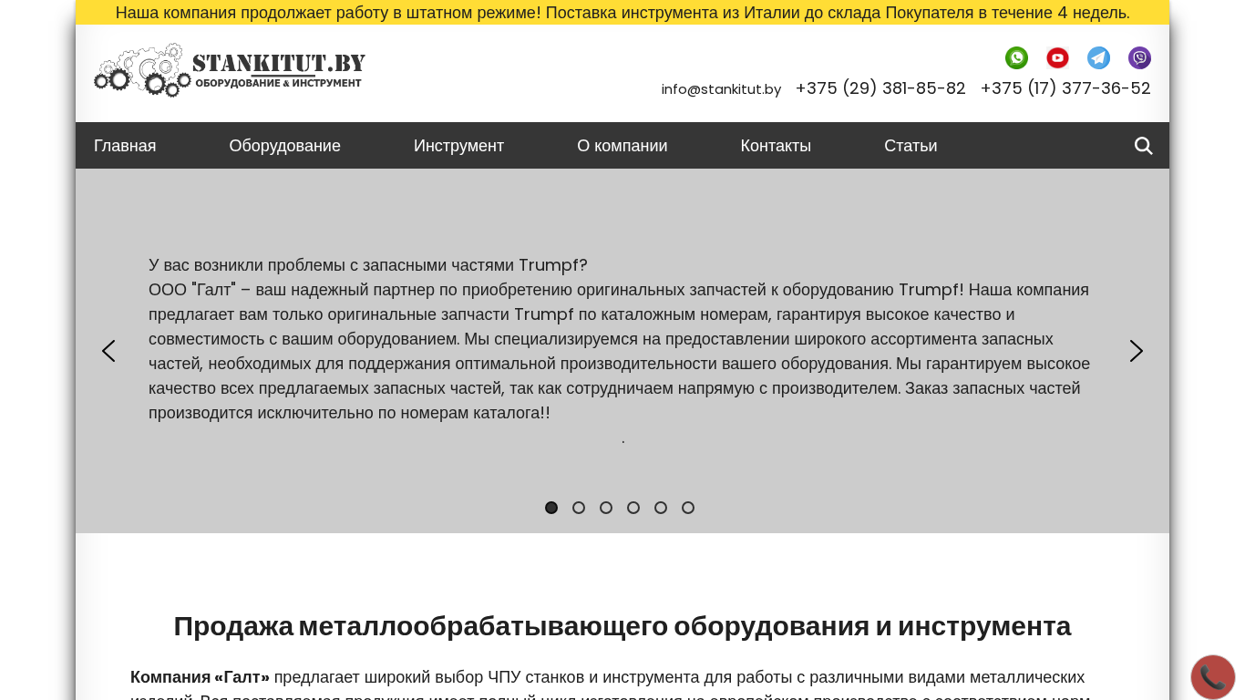 | Название / Заголовок | Купить металлообрабатывающее оборудование в Минске - ООО Галт |