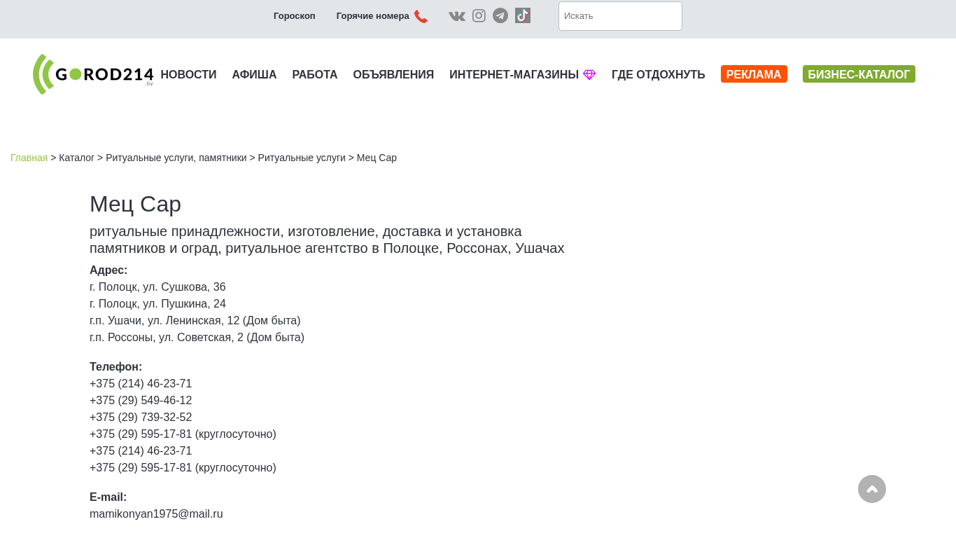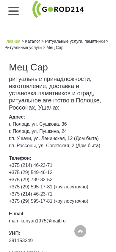 | Название / Заголовок | Мец Сар | Каталог организаций на GOROD214.by |