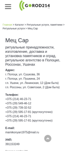| Ключевые слова | Мец Сар ритуальные услуги изготовление памятников гранитные памятники ритуальное агентство ритуальное ритуальные принадлежности ритуальные товары гробы гроб венки венок ритуальный мец сар мецсар |
