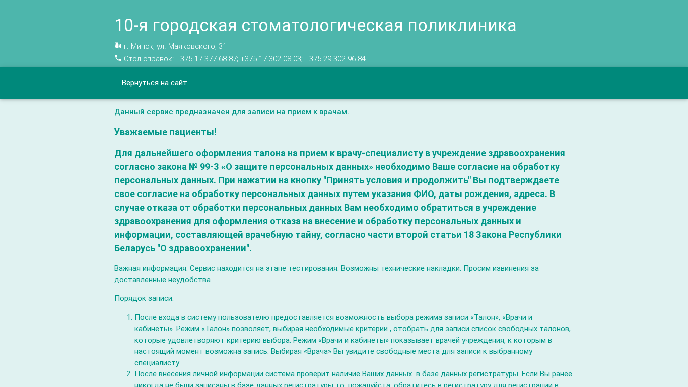 | Название / Заголовок | 10-я городская стоматологическая поликлиника. Заказ талонов |