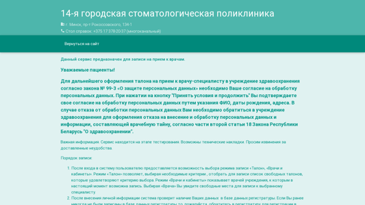 | Название / Заголовок | 14-я городская стоматологическая поликлиника. Заказ талонов |