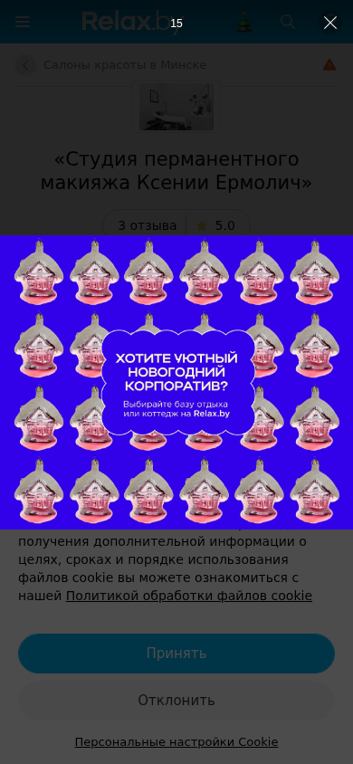 | SEO-описание | Студия перманентного макияжа Ксении Ермолич в Минске , ул. Первомайская 24/1 – отзывы, адрес на карте, телефоны, график работы и карта проезда на Relax.by. |