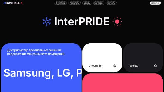 | SEO-описание | InterPRIDE — дистрибьютер премиальных решений поддержания микроклимата помещений. Благодаря оптимизации логистики и складских помещений, мы можем предложить уникальные ценовые решения для дилеров, монтажников, застройщиков. |