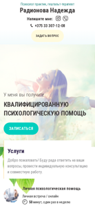 | Название / Заголовок | Консультация и помощь индвидуального психолога в Минске, онлайн. Радионова Надежда - психолог практик / гештальт-терапевт. |