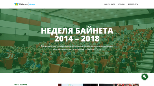 | SEO-описание | «Неделя Байнета» была одним из самых амбициозных мероприятий в сфере интернет-маркетинга Беларуси! На протяжении 4 лет Webcom Group организовывал эту международную конференцию, охватывающую все аспекты продвижения в интернете, для представителей бизнеса и digital-специалистов. |