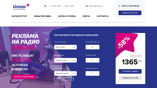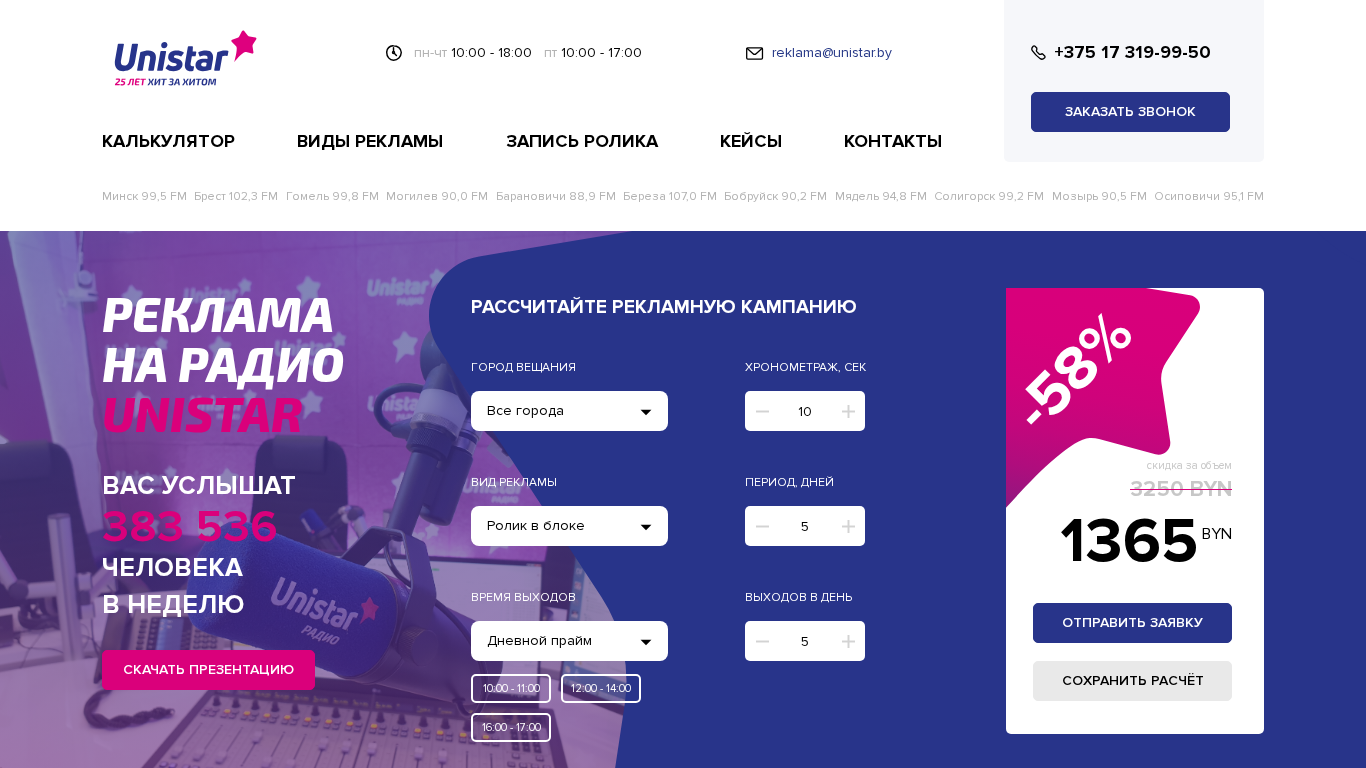 | Название / Заголовок | Реклама на радио Unistar - цены на рекламу на радио в Минске, Беларуси |