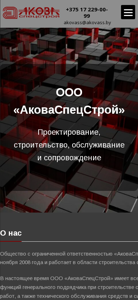 | SEO-описание | ООО «АковаСпецстрой» выполняет проектные и изыскательские, строительно-монтажные и пусконаладочные работы по устройству инженерных систем на объектах строительства |