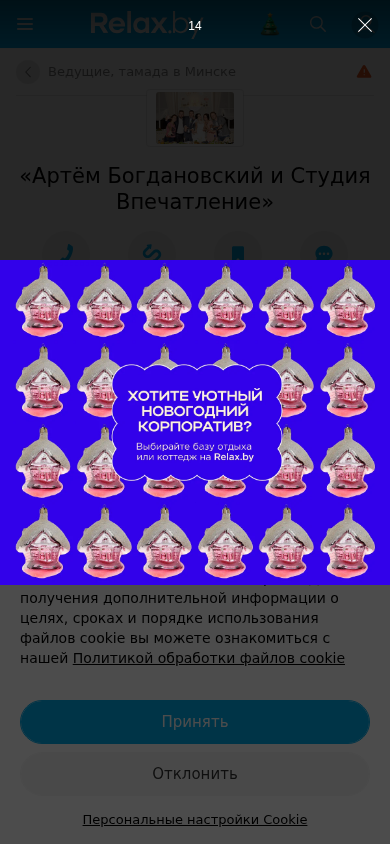 | SEO-описание | Артём Богдановский и Студия Впечатление в Минске – отзывы о ведущем, тамаде, стоимость проведения праздника, фото со свадеб, корпоративов, выпускных, праздничная программа, контакты. |