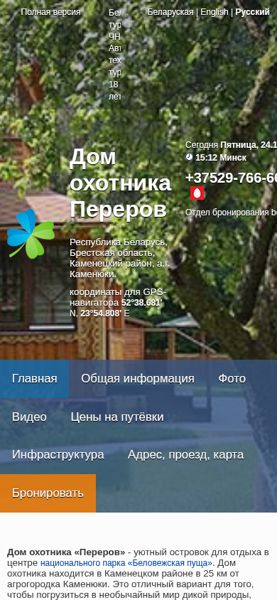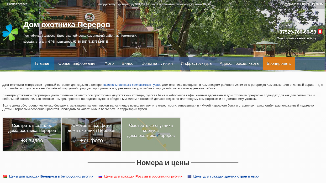 | Название / Заголовок | Переров дом охотника - Отдых в Беларуси Белоруссии |