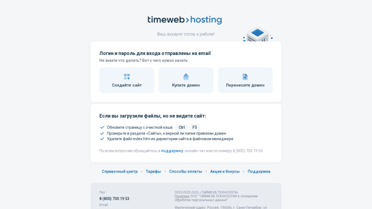 | SEO-лексика | домен ваш аккаунт готов работе email сайт 800 700 ооо таймвэб логин пароль входа отправлены знаете делать вот чего нужно |