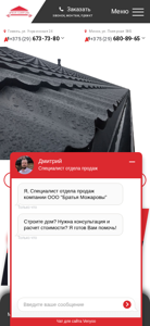 | AI-анализ | The portal Roofline.by is an e-commerce website for the company ООО "Братья Можаровы," which is the first supplier of building materials in Minsk and Homel. The website offers both wholesale and retail sales, with an inventory of all products listed. The homepage includes a calculator for roofing, sections for roofs, walls, and fencing, a blog, a FAQ section, and customer reviews. The company operates offices in Homel and Minsk, with contact information and opening hours provided. The website is available in Belarusian and Russian languages. The main product categories include various roofing materials such as metal, composite, and thatch, as well as walls, fencing, and water drainage systems. The design is simple and functional, with clear menus and easy navigation. The website also features a contact form for inquiries and an option |