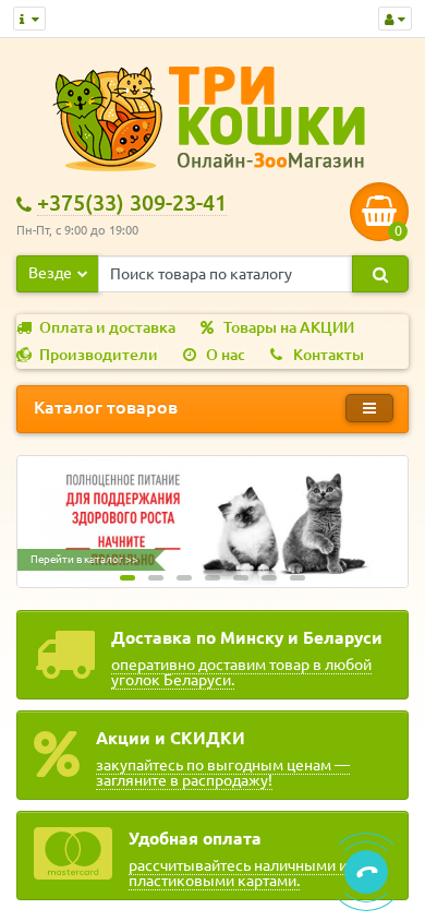 | Название / Заголовок | Интернет-магазин товаров для кошек и собак — ЗооМагазин «Три Кошки» |