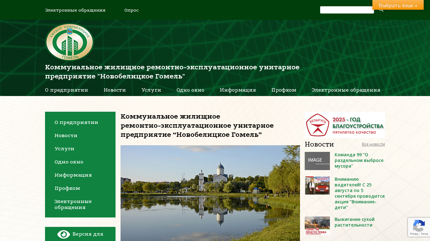 | SEO-лексика | гомель новобелицкое коммунальное жилищное ремонтно-эксплуатационное унитарное предприятие новости предприятия электронные обращения услуги район предприятии одно окно информация профком тел приемной |