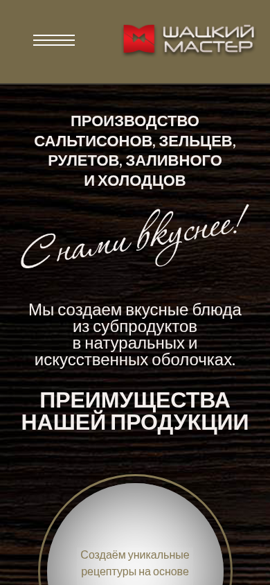 | SEO-описание | Официальный сайт Шацкого Мастера, производства сальтисонов, зельцев, рулетов, заливного и холодцов на основе уникальных рецептов. |