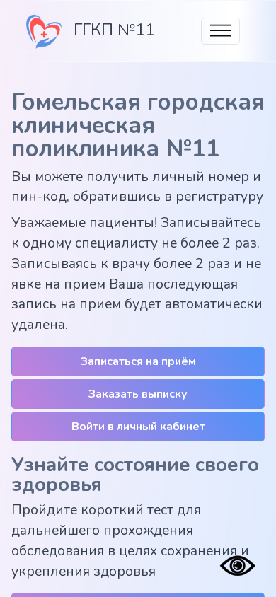 | Название / Заголовок | Главная страница — Гомельская городская клиническая поликлиника №11 |
