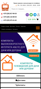 | SEO-описание | Наш интернет-магазин занимается продажей товаров для ТВ, подключением 4G интернета, спутникового ТВ (НТВ-Плюс, Триколор, Телекарта). Лучшие цены и подарки! |