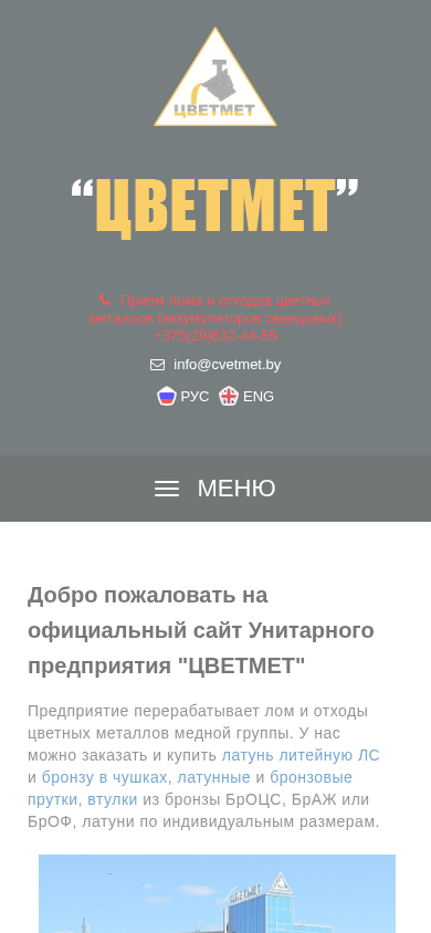 | SEO-описание | Производственное унитарное предприятие Цветмет - продукция из цветных сплавов, производство изделий и полуфабрикатов из медных сплавов |