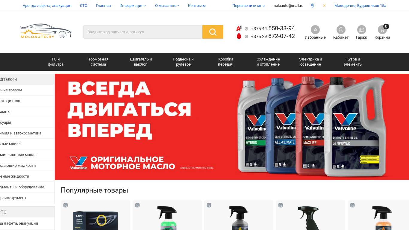 | SEO-описание | Автозапчасти, аккумуляторы, инструменты для обслуживания, электроинструмент, пневмоинструмент, химия и принадлежности для легковых автомобилей и мотоциклов в наличии и под заказ в течении двух часов в интернет-магазине moloauto.by |