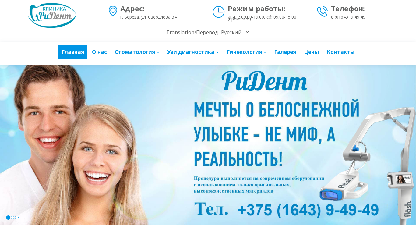 | Название / Заголовок | Клиника (стоматология) Ридент в Березе (стоматология, узи-диагностика, гинекология) |