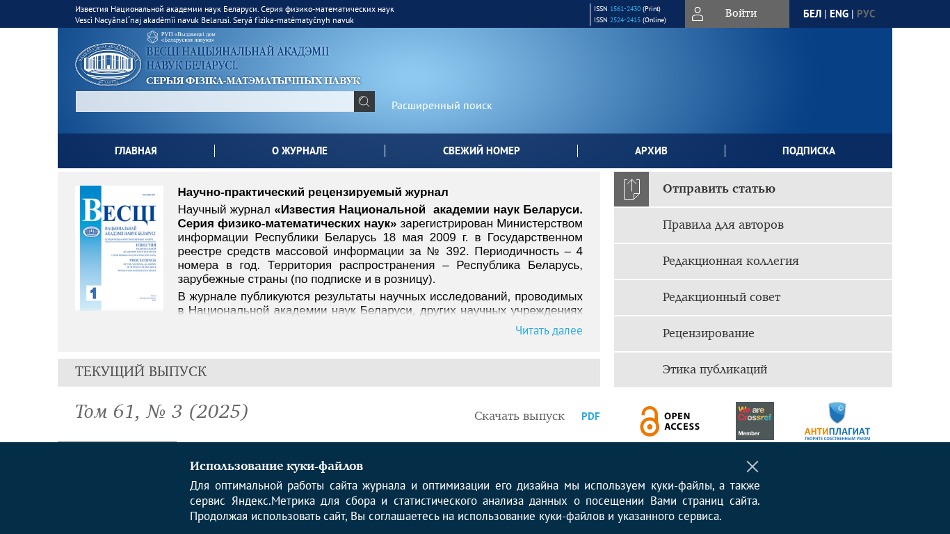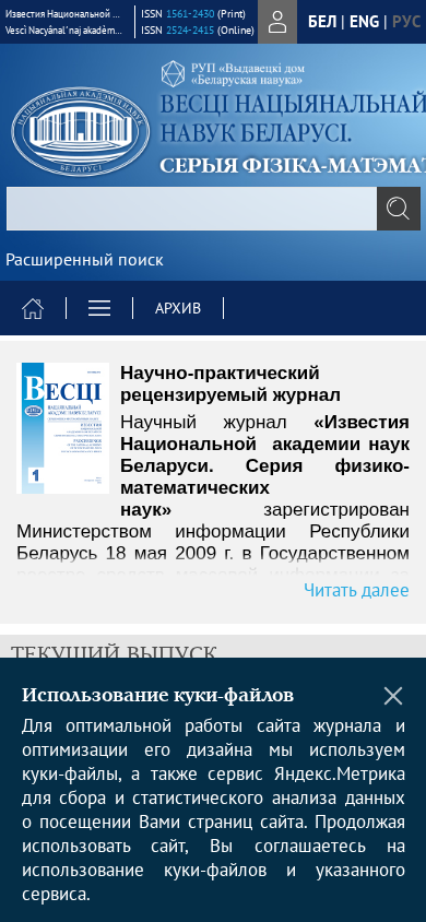 | Название / Заголовок | Известия Национальной академии наук Беларуси. Серия физико-математических наук |