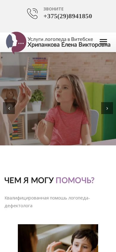 | Название / Заголовок | Детский логопед-дефектолог в Витебске – Елена Викторовна Хрипанкова |
