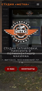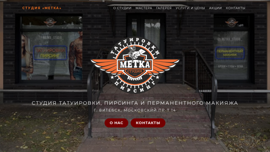 | SEO-описание | Студия татуировки, пирсинга, перманентного макияжа "МЕТКА" (г. Витебск, Московский пр-т 14). Перечень услуг, цены и акции, информация о мастерах. |