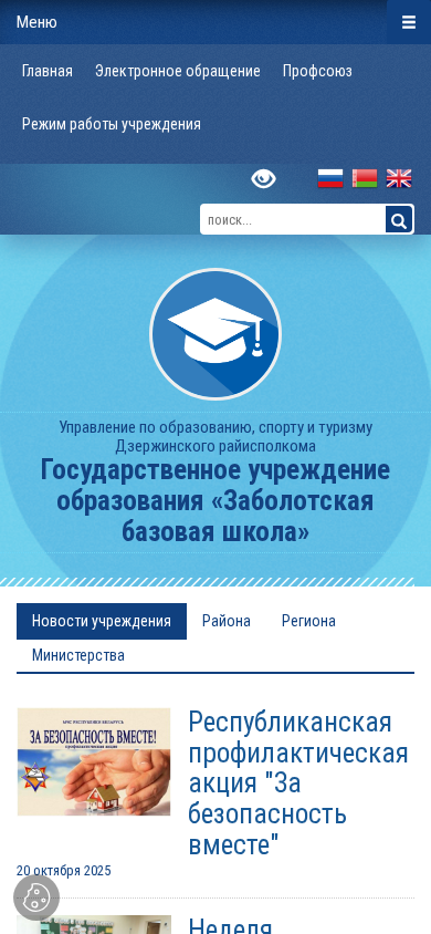 | Название / Заголовок | ГУО «Заболотская базовая школа» |