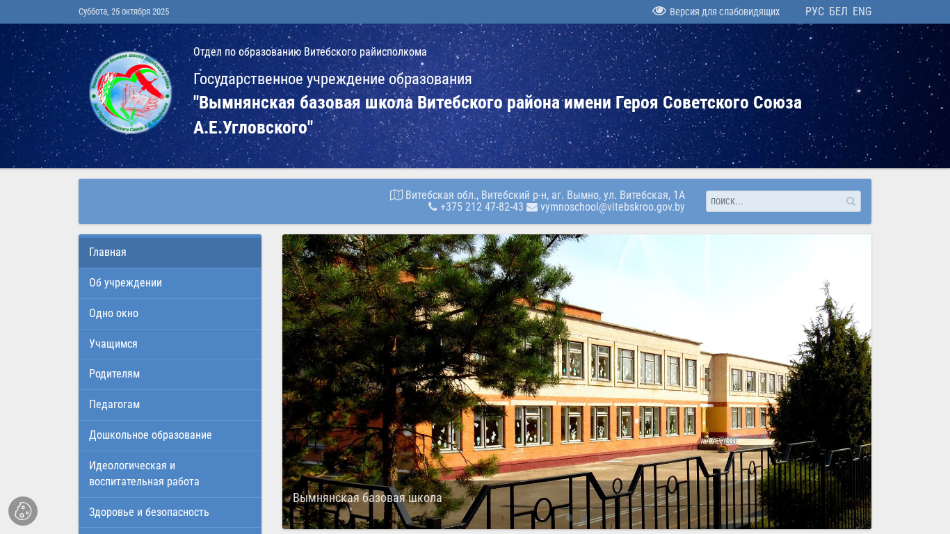 | Название / Заголовок | ГУО "Вымнянская базовая школа Витебского района имени Героя Советского Союза А.Е.Угловского" |
