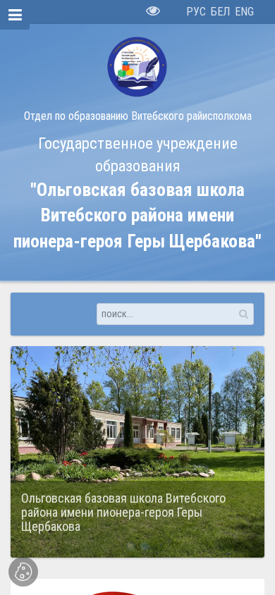 | Название / Заголовок | ГУО "Ольговская базовая школа Витебского района имени пионера-героя Геры Щербакова" |
