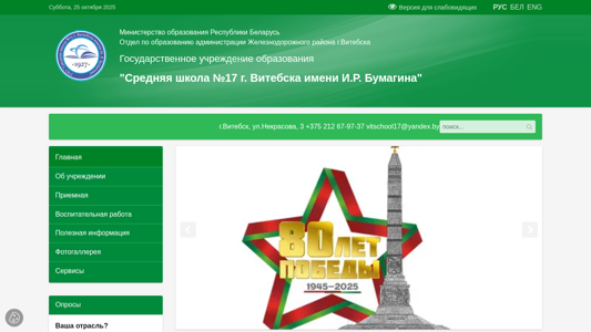 | Название / Заголовок | Государственное учреждение образования "Средняя школа № 17 г. Витебска имени И.Р. Бумагина" |