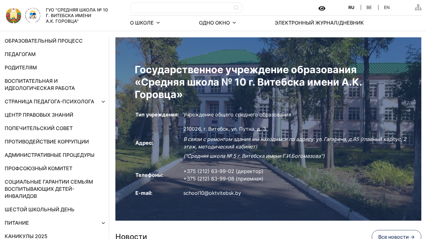| Canonical URL | http://school10.oktvitebsk.by/ |