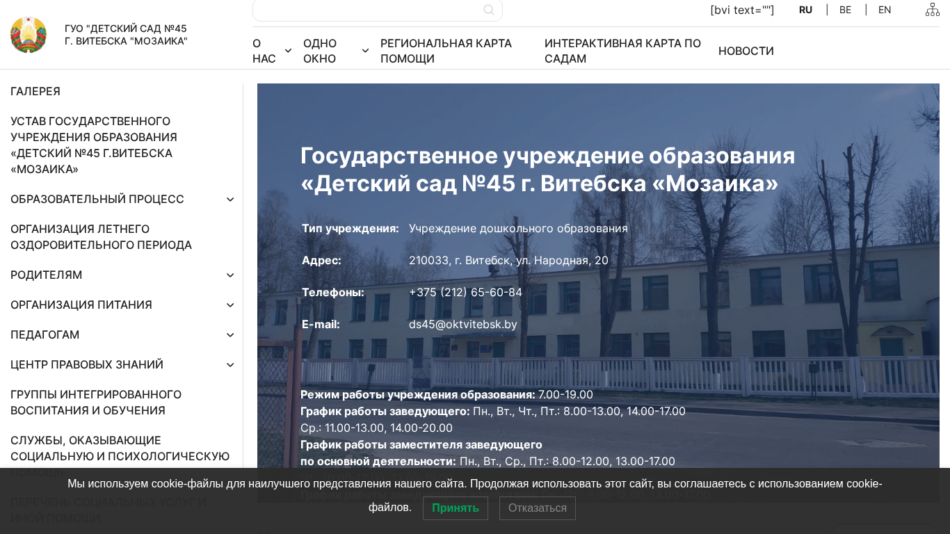 | Название / Заголовок | ГУО "Детский сад № 45 г. Витебска "Мзаика" - |