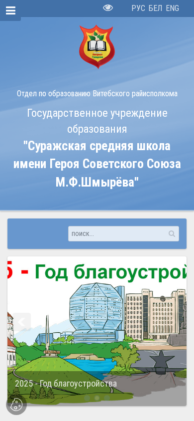 | Название / Заголовок | ГУО "Суражская средняя школа имени Героя Советского Союза М.Ф.Шмырёва" |