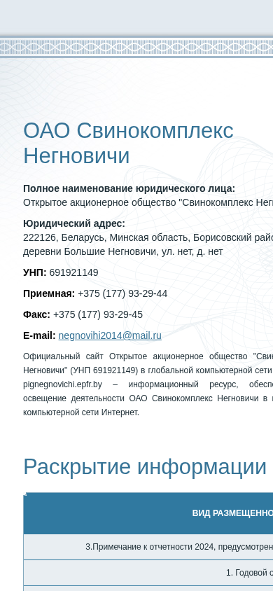 | Название / Заголовок | Свинокомплекс Негновичи ОАО |