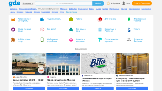 | SEO-описание | Gde.by - популярная доска бесплатных частных объявлений Белыничей. На нашем сайте Вы найдете актуальные объявления от частных лиц и деловых организаций Белыничей. Любой желающий может подать собственное объявление абсолютно бесплатно. |