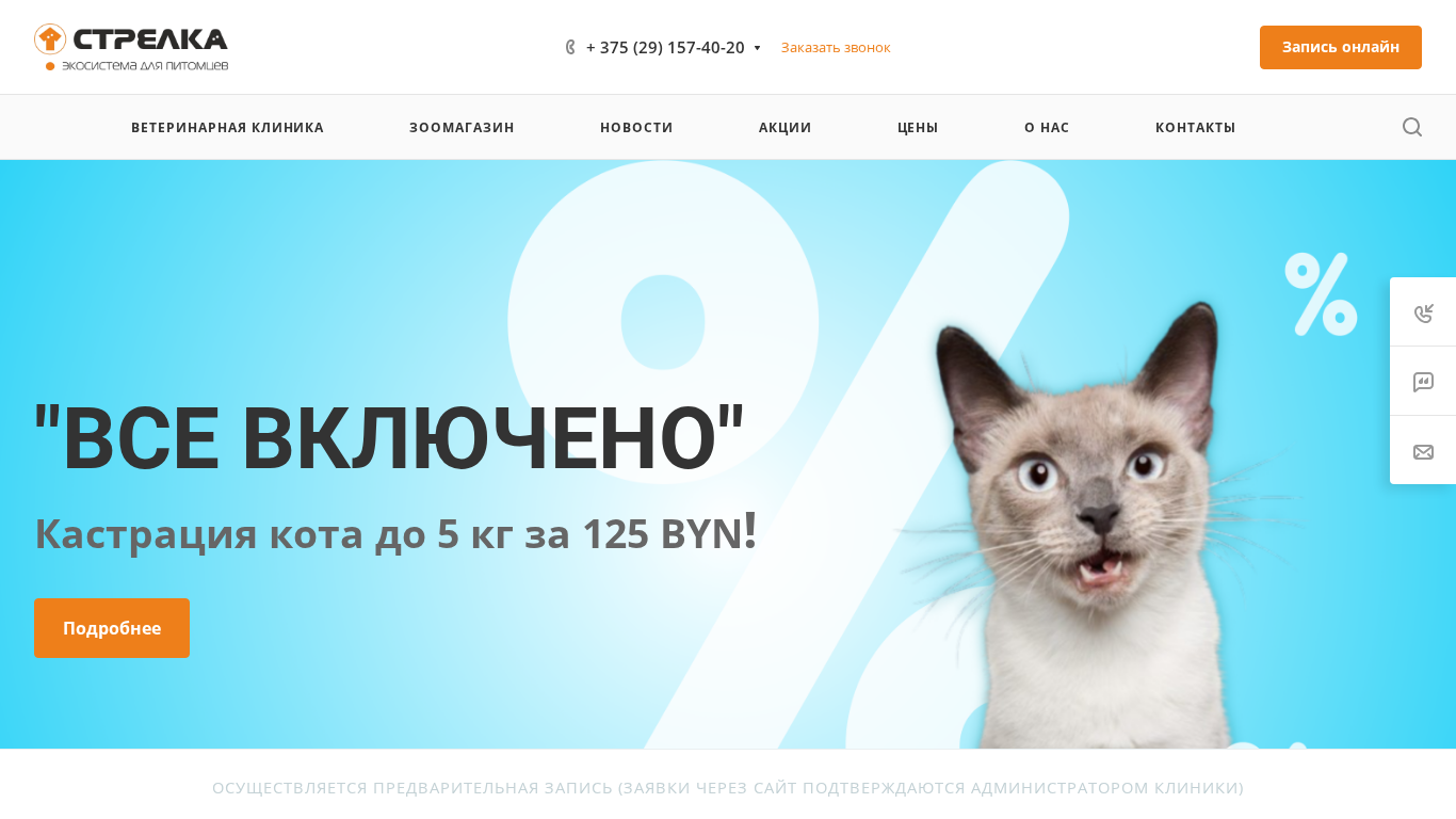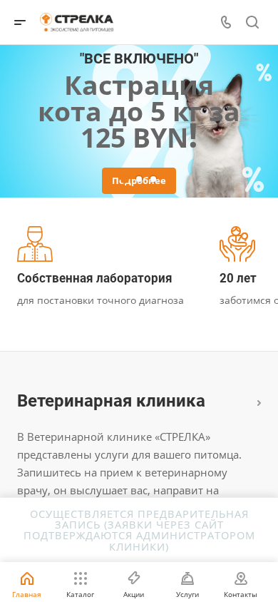 | SEO-описание | Сайт ветеринарной клиники в Минске Стрелка! ✅ Опыт работы более 20 лет! 🐾 Предлагаем услуги зоомагазина и ветеринарной медицины! ☎ Звоните: + 375 (29) 157-40-20! |
