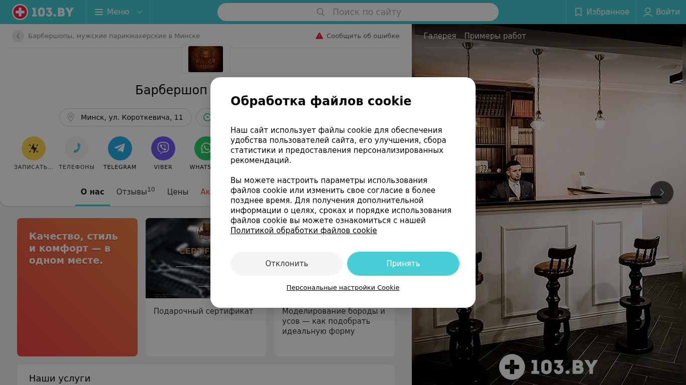 | SEO-описание | Барбершоп Хищник Минск ул. Короткевича 11 – телефоны, время работы, отзывы и схема проезда в каталоге медицинского портала 103.by. |