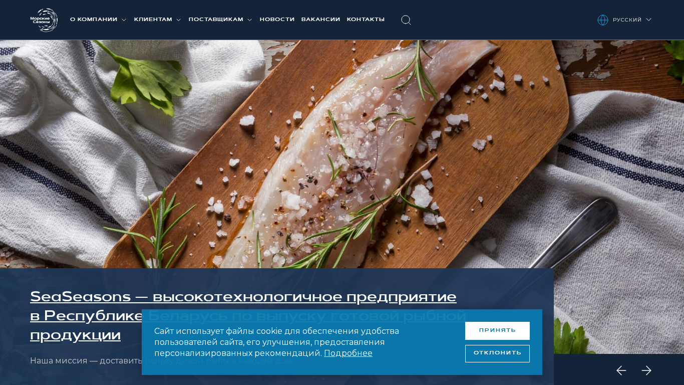 | SEO-описание | Sea Seasons - оптовый поставщик свежих и качественных морепродуктов в Беларуси. Широкий ассортимент, выгодные цены! Узнайте больше! |
