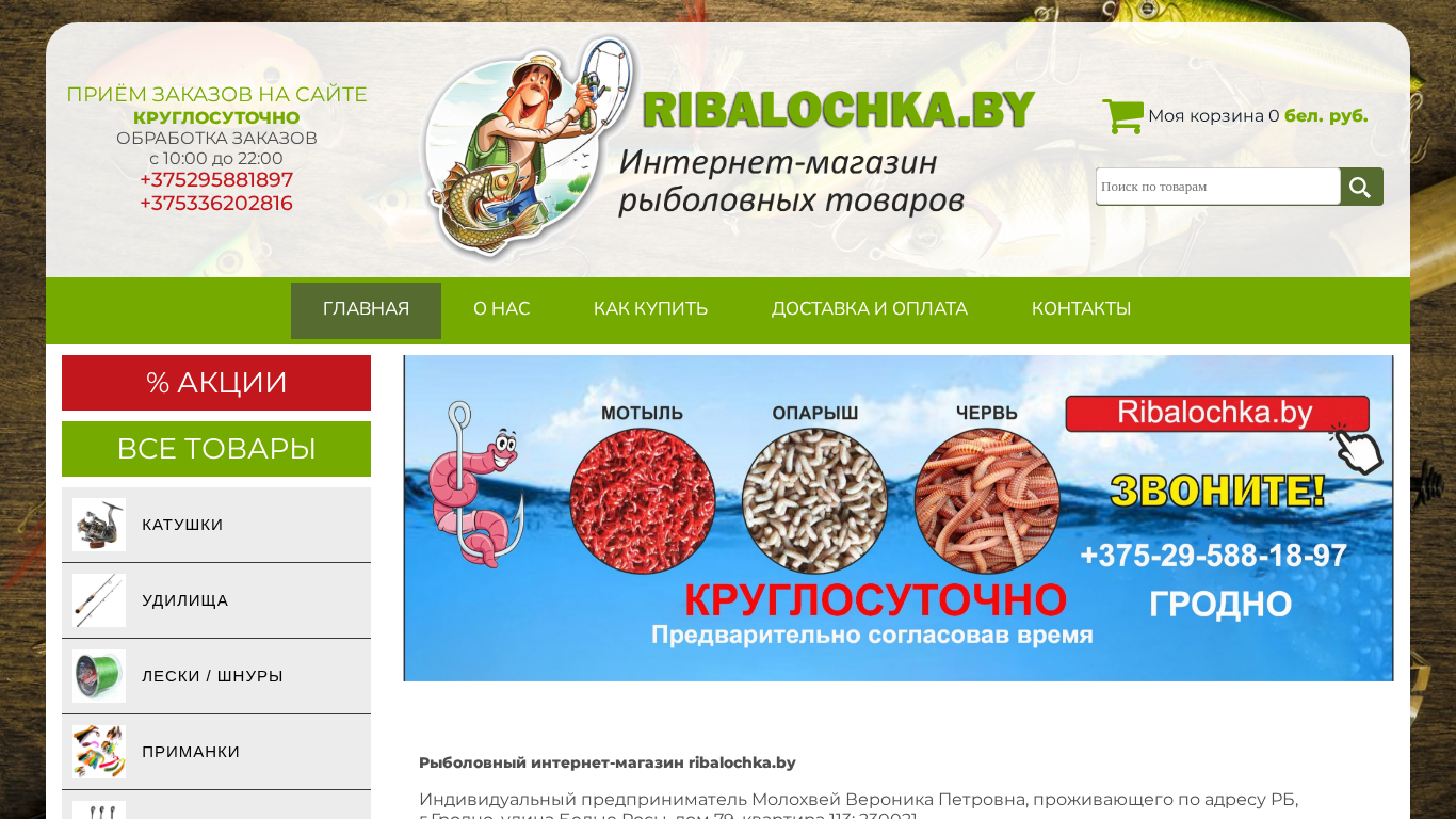 | SEO-описание | ribalochka.by Рыболовный интернет магазин в Гродно ➢ товары для рыбалки, снасти, экипировка - Доставка по всей Беларуси |