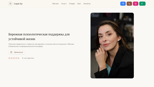 | SEO-описание | Профессиональная психологическая помощь в Минске. Онлайн и очно. Индивидуальные и семейные консультации. Работа с тревогой, депрессией, отношениями. |