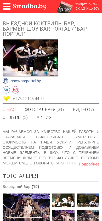 | SEO-описание | Выездной коктейль, бар, бармен-шоу Bar Portal / "Бар Портал" - шоу-программы в Минске - цены и отзывы.. Адреса, контакты и отзывы. |