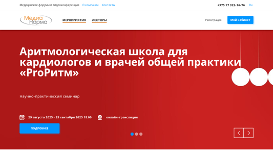 | AI-анализ | This website is dedicated to medical forums and video conferences organized by Medianorma. It provides information on various events, such as the 'Nauчно-prakticheskii seminar on Contemporary Approaches to the Therapy of Secondary Immunodeficiencies in Lymphomas' on July 17, 2025, and the 'VI Международная научная конференция on Genetics and Biotechnology of the 21st Century: Problems, Achievements, Perspectives' from November 18 to 20, 2025. The website also offers details about past and upcoming events, including the 'XI Съезд акушеров-гинекологов и неонатологов Республики Беларусь' on October 28, 2022 |