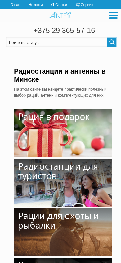 | SEO-описание | Рации и антенны для автомобилей. Оперативная радиосвязь для дальнобойщиков, охотников и радиолюбителей. Ремонт и настройка. Купить в Минске и Беларуси. |