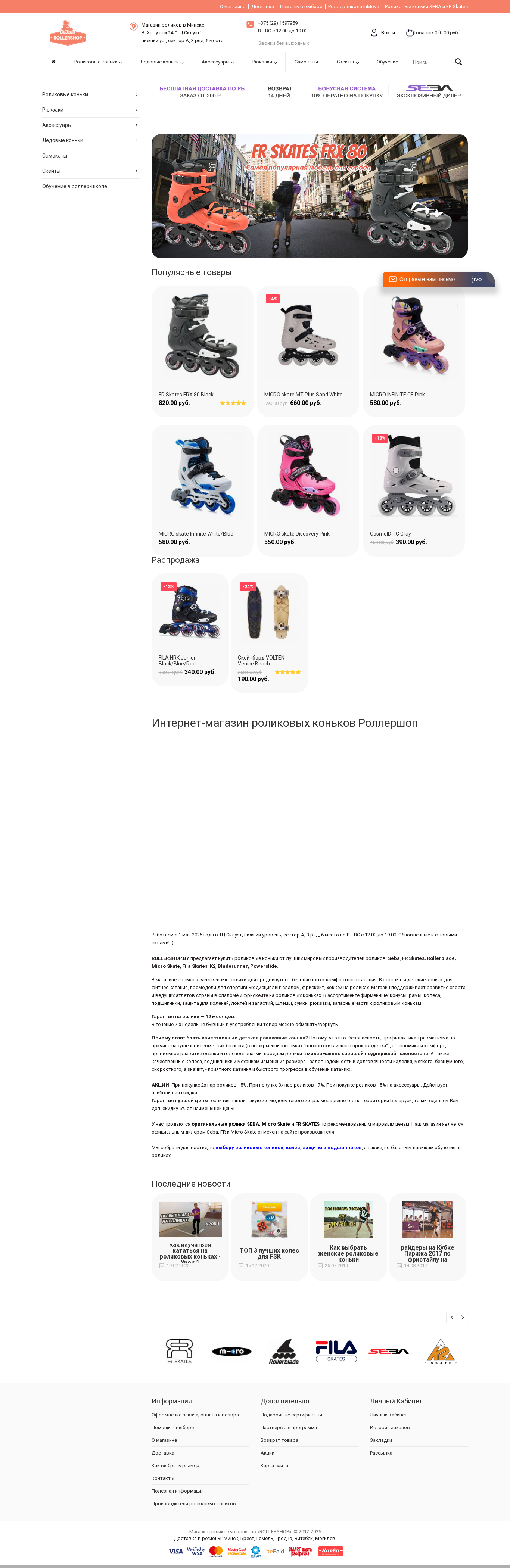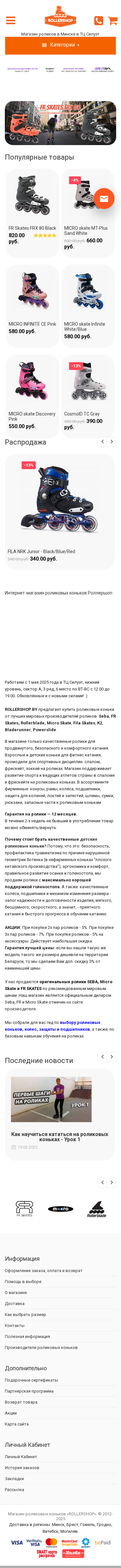 | SEO-описание | Предлагаем большой ассортимент роликовых коньков и аксессуаров по доступным ценам. Гарантия от 1 года. Доставка по всей Беларуси. Покупайте качественные ролики от лучших мировых производителей: FR Skates, SEBA, Powerslide, Rollerblade, Fila, Micro, K2 и др. |