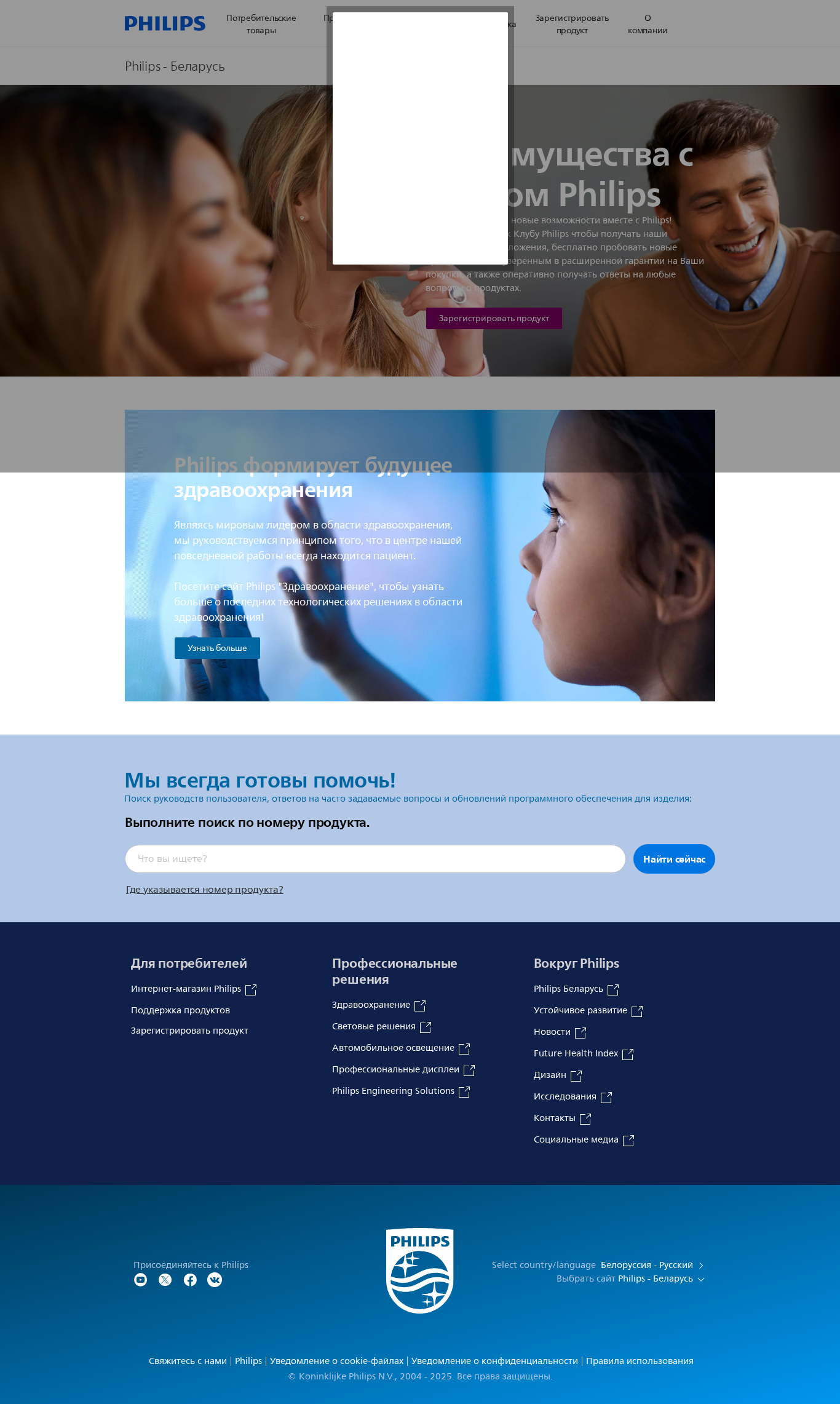 | AI-анализ | Philips - Belarus: Consumer products and professional solutions in Healthcare, Lighting, Automotive, Professional Displays and Engineering Services. Register products, find user manuals and customer support. Philips, a global leader in healthcare, focuses on the patient in all its endeavors. Discover the latest health technology innovations on the Philips "Healthcare" site. User guides, FAQs, and software updates for products can be found by entering the product number. Some products may not be available in all countries, check for availability before purchase. Join the Philips Club for special offers, free product trials, extended warranties, and quick product support. Philips is shaping the future of healthcare. |