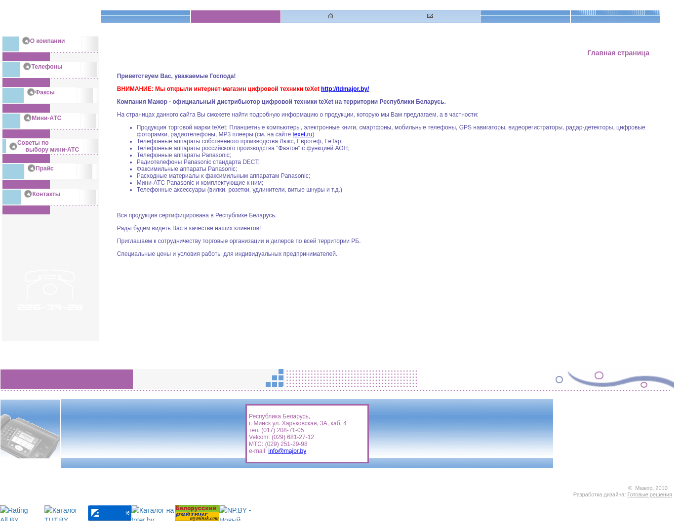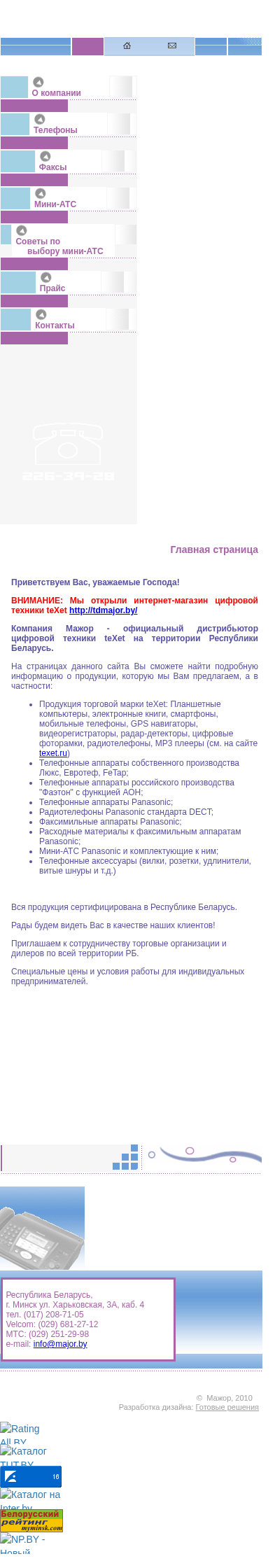 | Название / Заголовок | Телефонные аппараты, радиотелефоны, факсы PANASONIC, мини-АТС PANASONIC :: ООО МАЖОР :: |