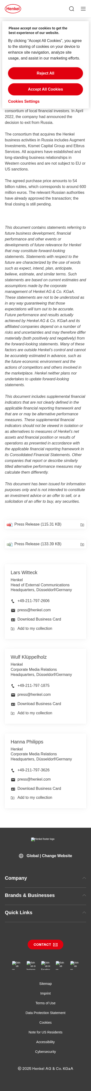 | Название / Заголовок | Henkel divests its business activities in Russia |